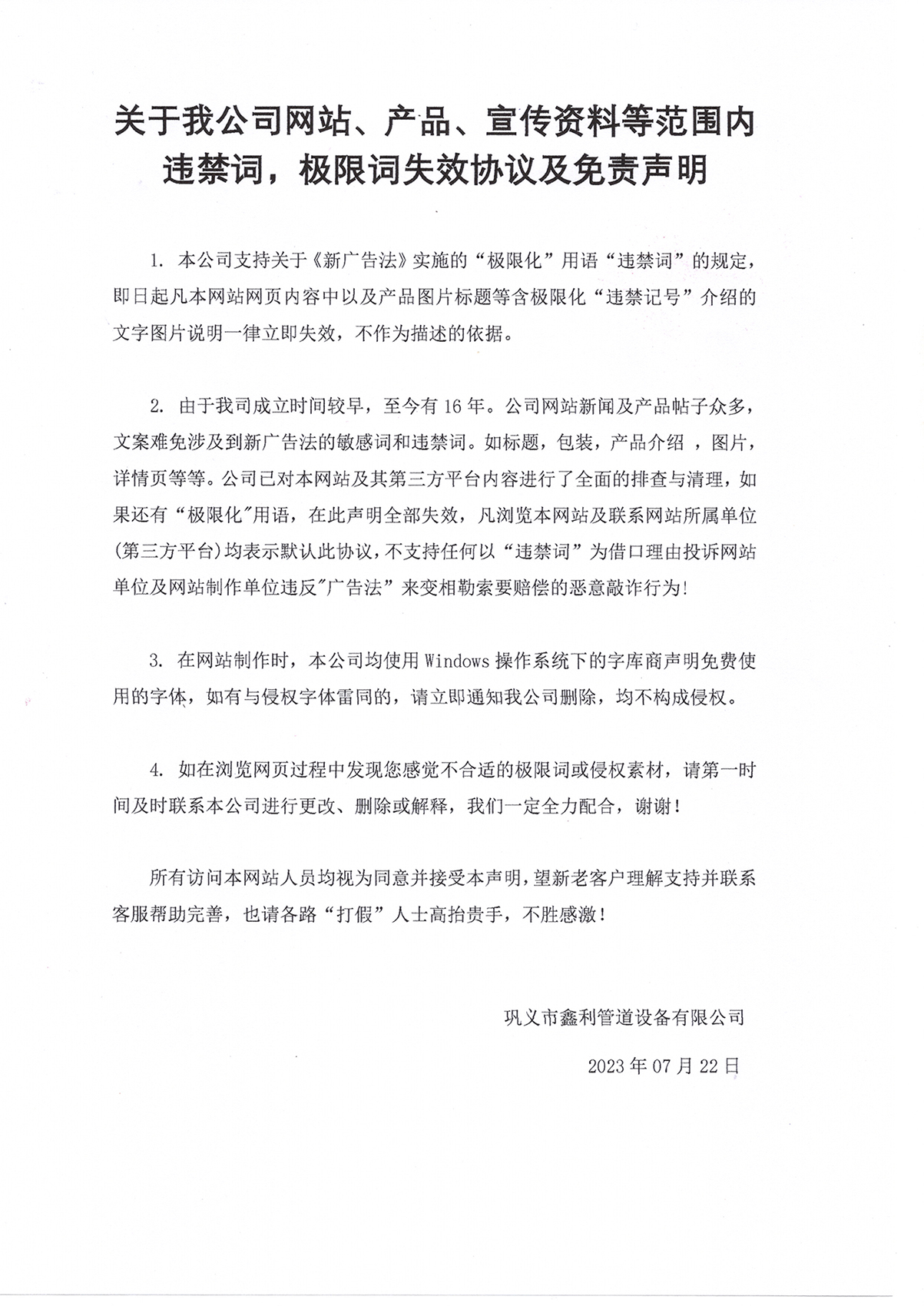 關(guān)于我公司網(wǎng)站、產(chǎn)品、宣傳資料等范圍內(nèi)違禁詞,極限詞失效協(xié)議及免責(zé)聲明 ?